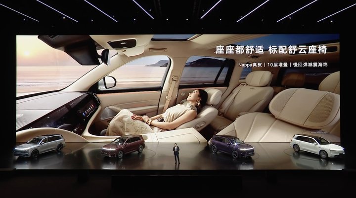 智界 R7 升级到了 16.1 英寸的全新空中屏、带按摩、加热以及通风的主副驾双零重力座椅,后排的乘坐空间有所增加,腿部空间来到了 956mm,头部空间也超过 1000mm。新车也将全系标配电动遮阳帘、 21 扬声器音响、智能冷暖箱和车外控车功能。